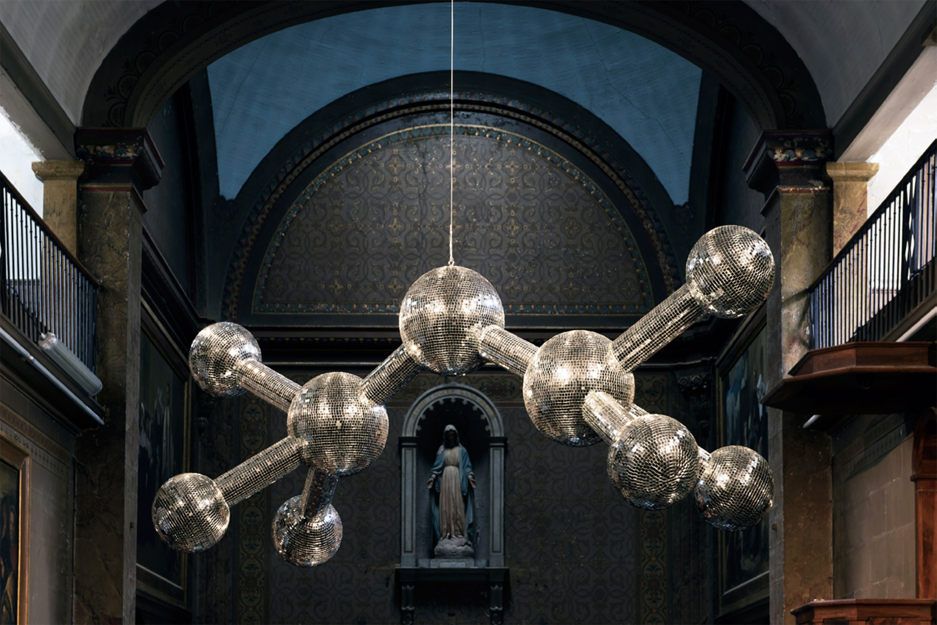 Photo : Disco ball (Ether), 2019, polystyrène, miroirs, dimensions variables.